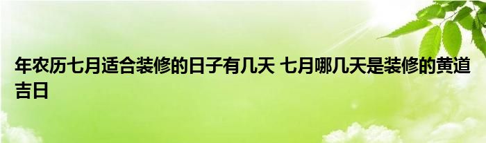 年农历七月适合装修的日子有几天 七月哪几天是装修的黄道吉日