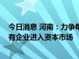 河南省人民政府印发《河南省推进企业上市五年倍增行动实施方案》,方案提出,自2022年起5年内,力争每年新增境内外上市公司20家,实现 浏览全文>>