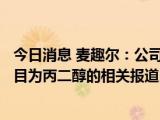 麦趣尔(002719)回复关注函:经核查,公司生产的2批次纯牛奶不合格,不合格项目为丙二醇的相关报道内容属实。因“丙二醇”指标并不 浏览全文>>